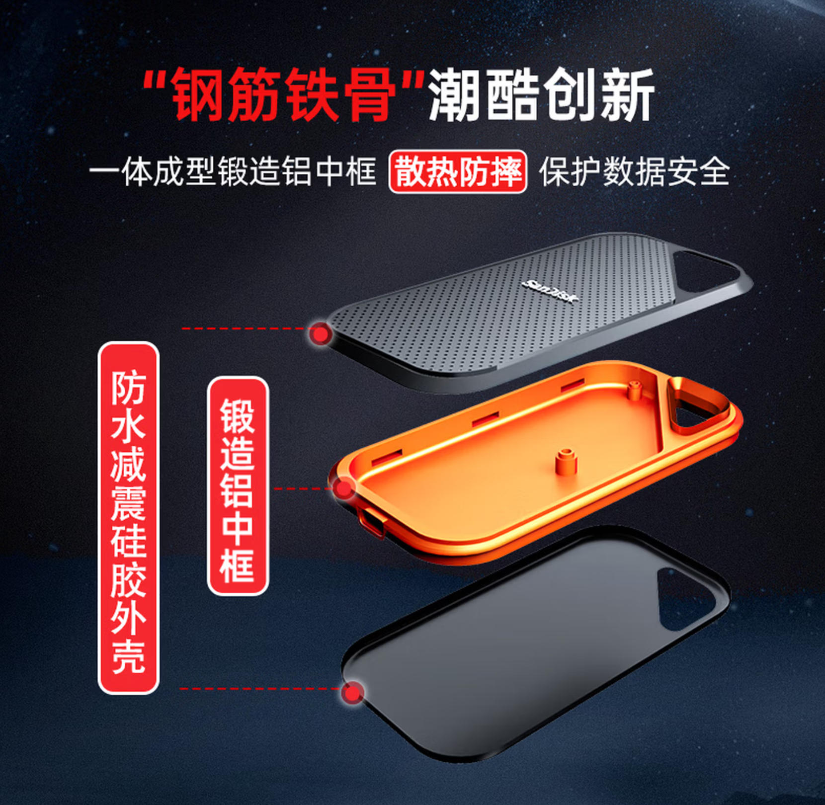 君航科技 闪迪(SanDisk)1TB Nvme移动固态硬盘(PSSD)E81至尊超极速Pro版SSD 读速2000MB/s 手机直连笔记本外接 三防保护