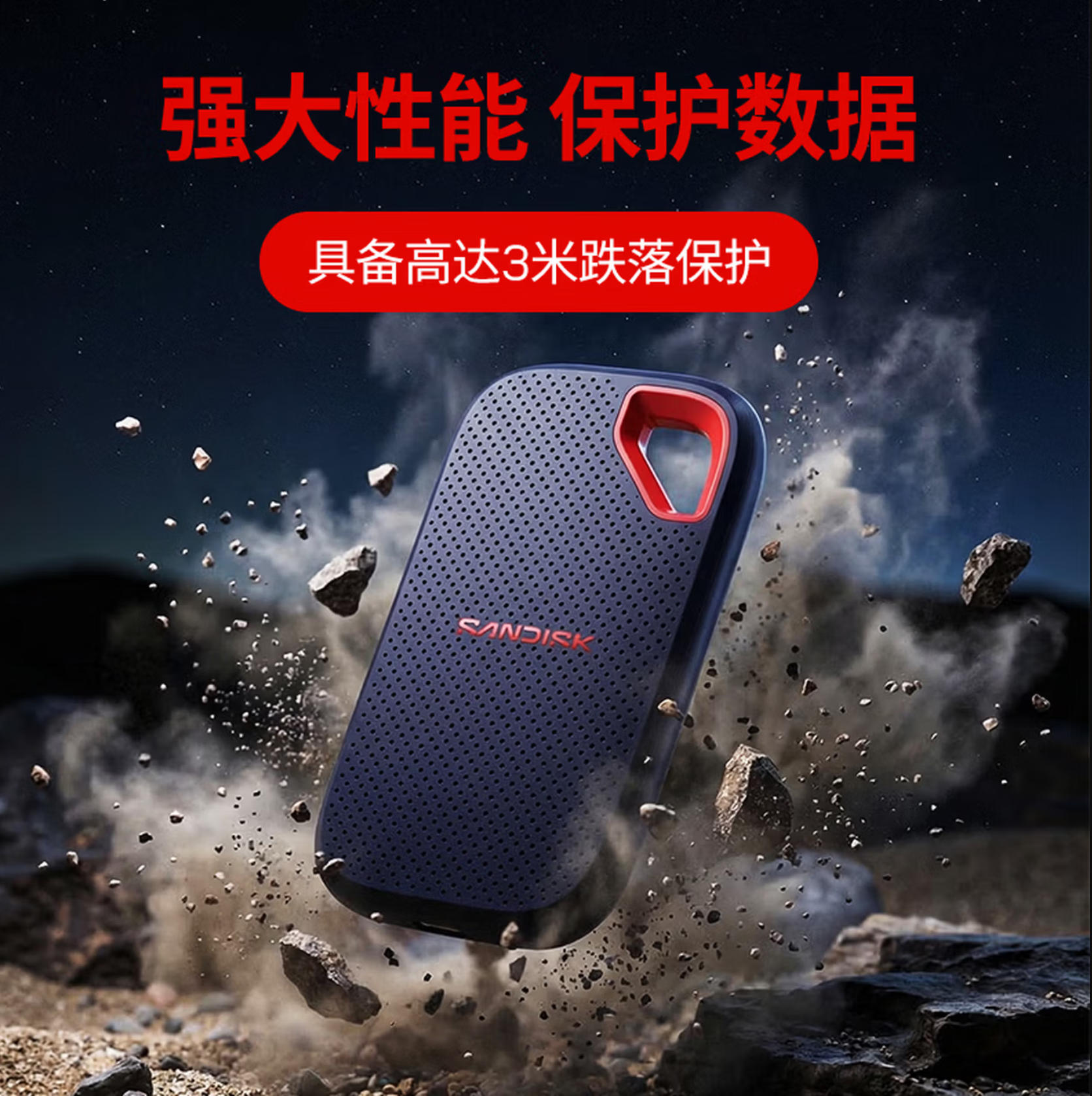 君航科技 闪迪(SanDisk)2TB Type-c USB3.2 NVMe移动固态硬盘(PSSD)E70升级版 读速2000MB/s 三防保护 兼容手机电脑平板