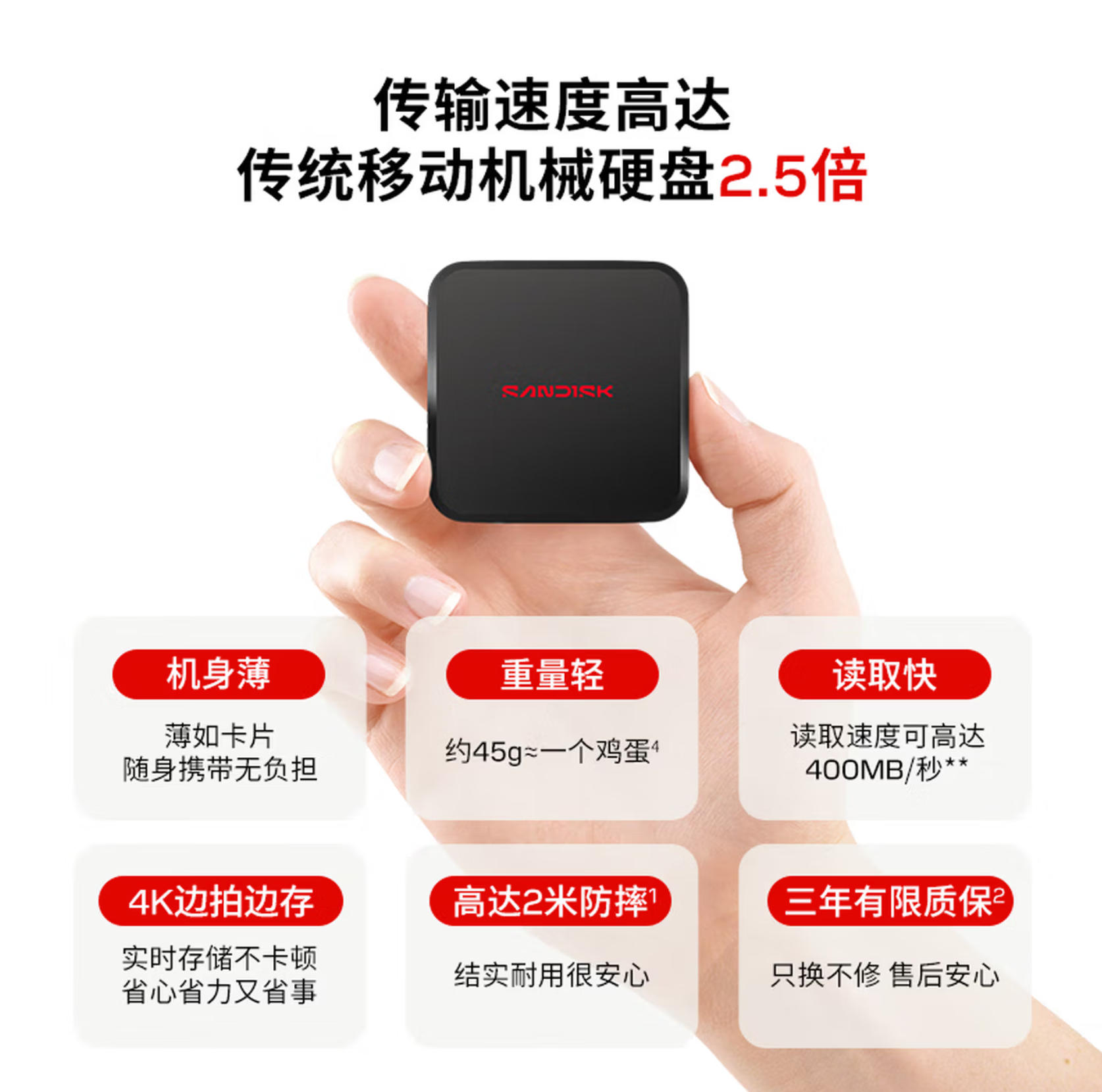 君航科技 闪迪(SanDisk)ELE 2TB 移动固态硬盘(PSSD)新元素 type-c接口 小巧便携手机直连笔记本两用外接 办公存储西数