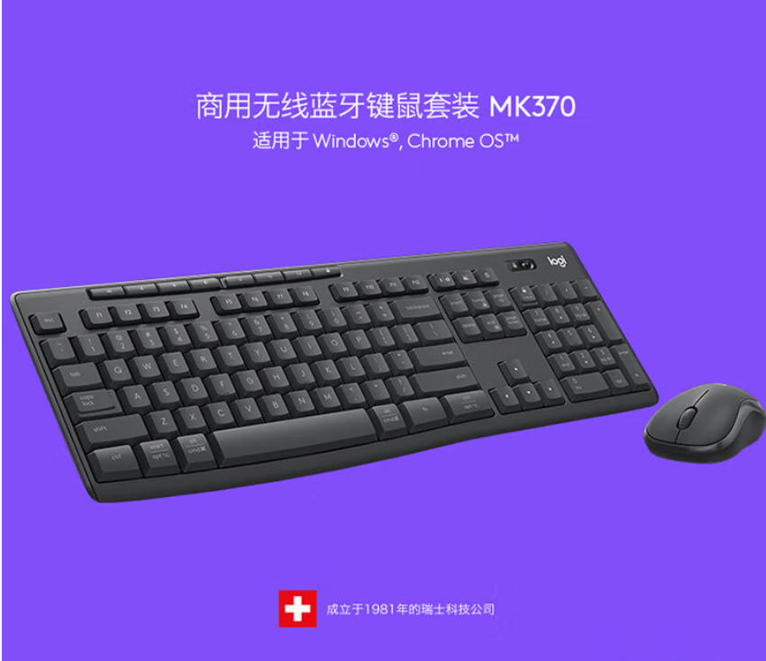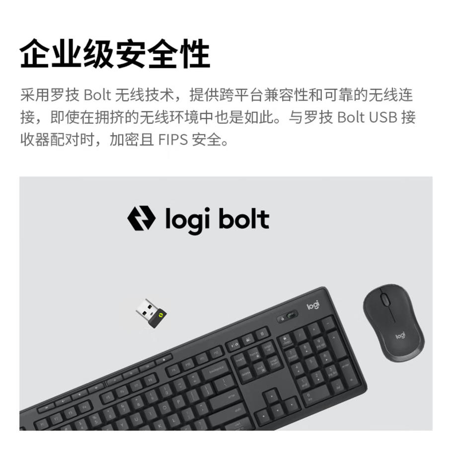 莱英办公 罗技(Logitech)MK370 无线键鼠套装 商务办公蓝牙鼠标键盘 静音鼠标 全尺寸 带bolt接收器 商用版 黑色