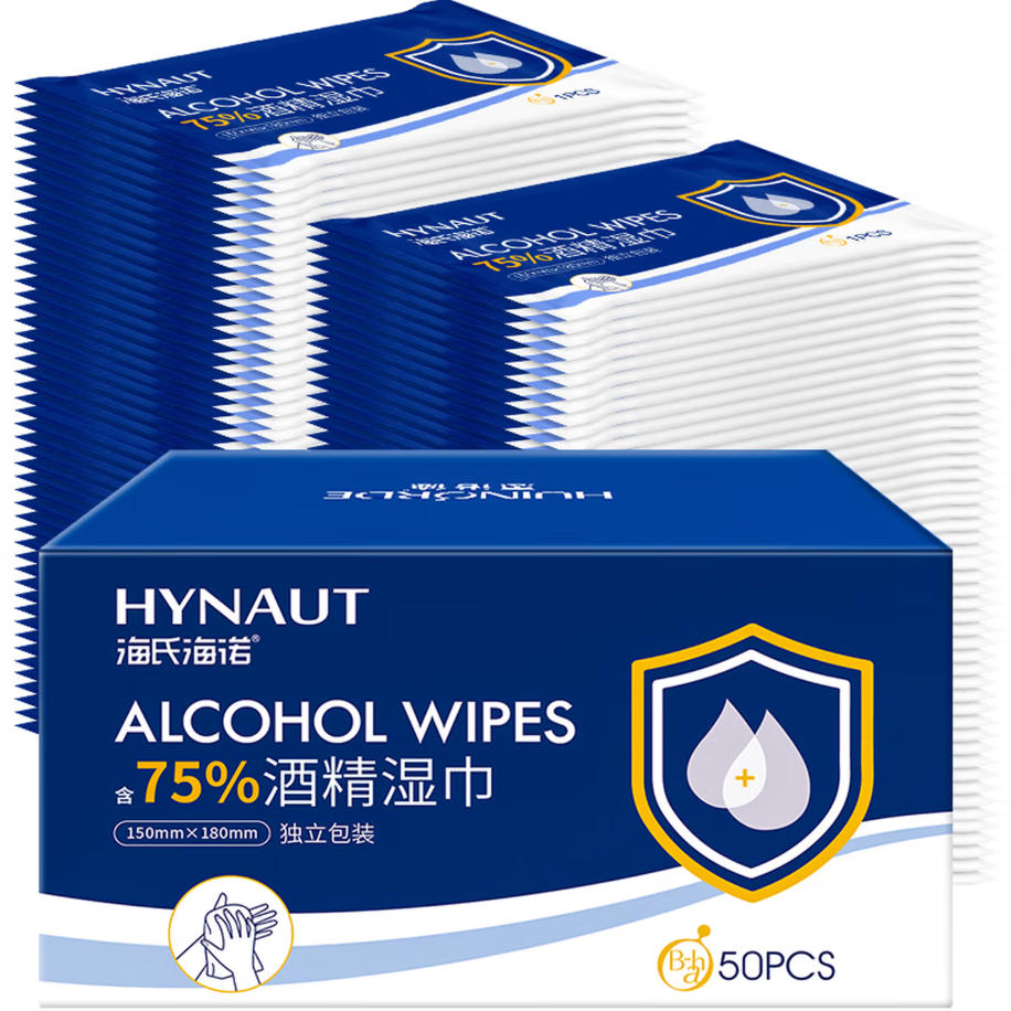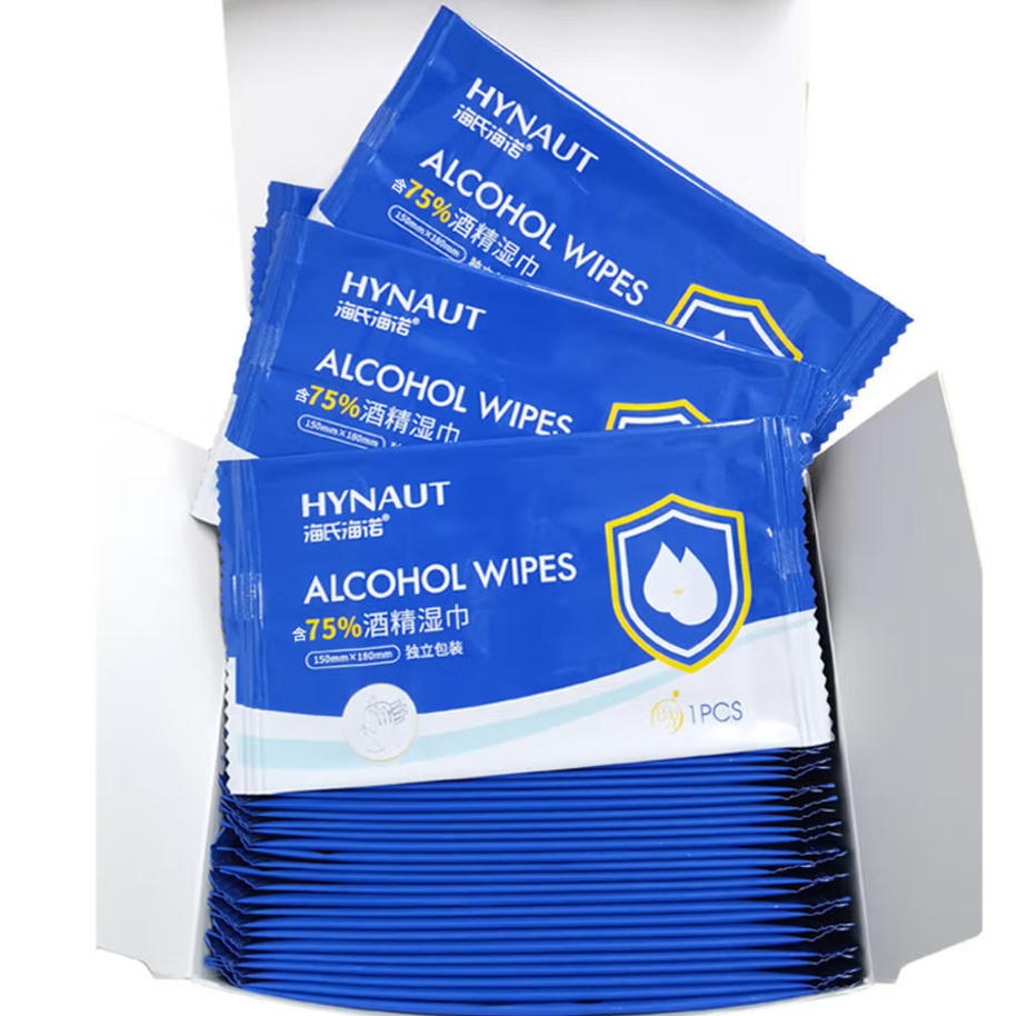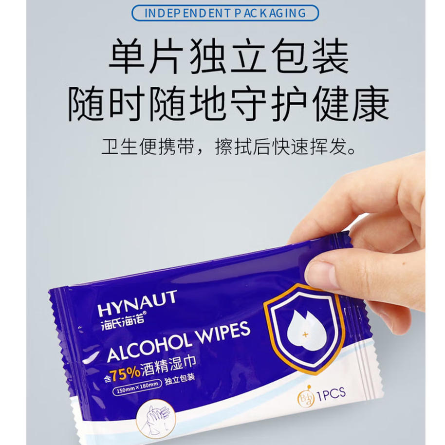 莱英办公 海氏海诺 75%酒精湿巾 一次性消毒酒精棉片 大号 单片独立包装 50片便携小包