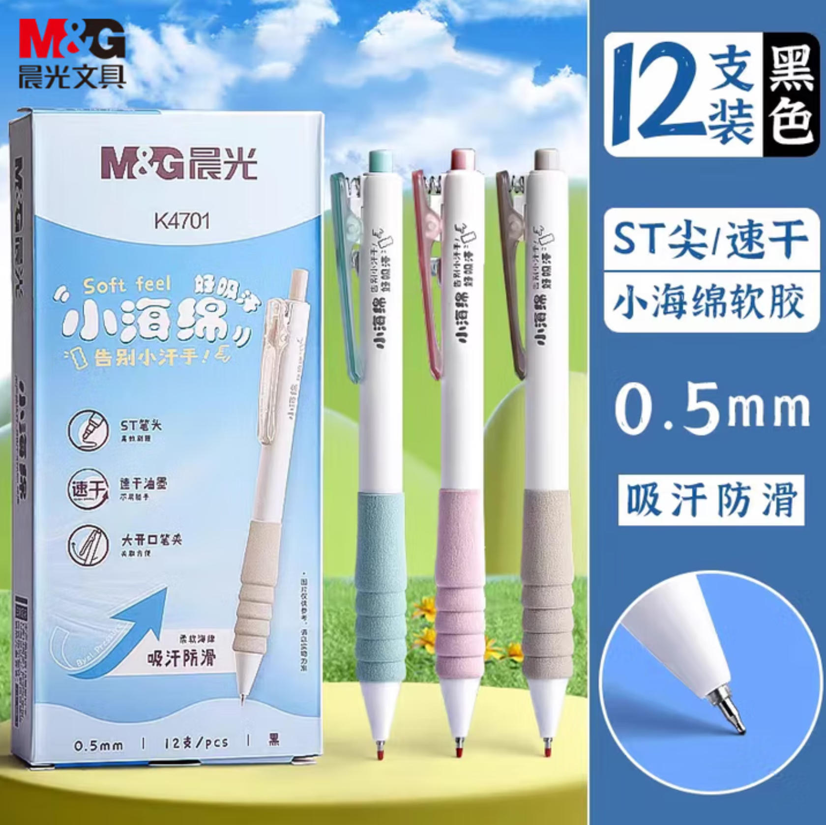 森淼办公 晨光(M&G)文具 按动中性笔 速干ST头0.5刷题笔防滑小海绵护套 考试 办公 签字笔 黑色/12支装 AGPK4701A