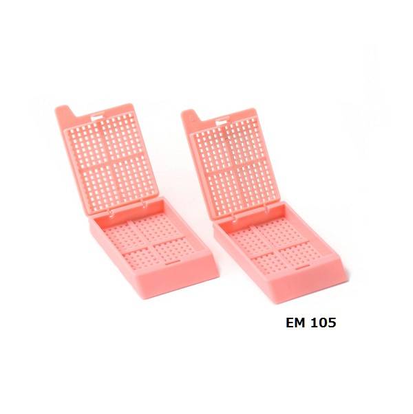 EM102/可拆装的一片式设计,单手操作方便,封盖紧密保证在组织处理过程中的使用安全性,EM101/可拆装的一片式设计,单手操作方便,且合盖安全保证不会造成样本的丢失,EM105・106/独特的铰链设计,使底/盖结合更加紧密,即使频繁的开关盖也不会有样本丢失的风险,EM116/可拆装的两片式设计,前后两端各有一个大的插槽,特别适用于处理和包埋小的组织,无需使用海绵垫底/盖子合上后,安全牢固,不用担心样本丢失。