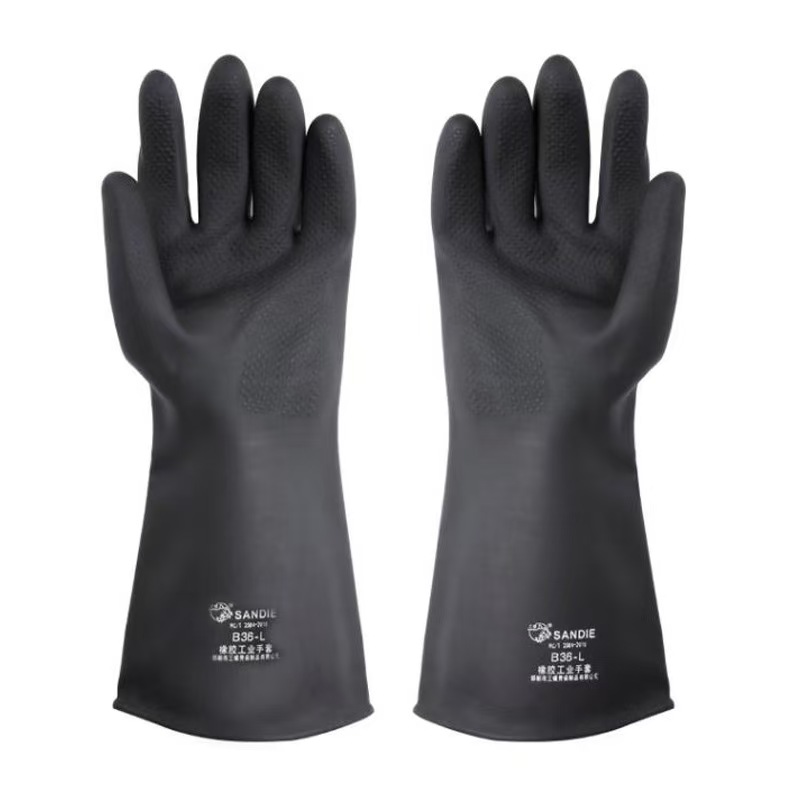 三蝶橡胶工业手套耐油防油实验室耐酸碱防水黑色作业用橡胶手套