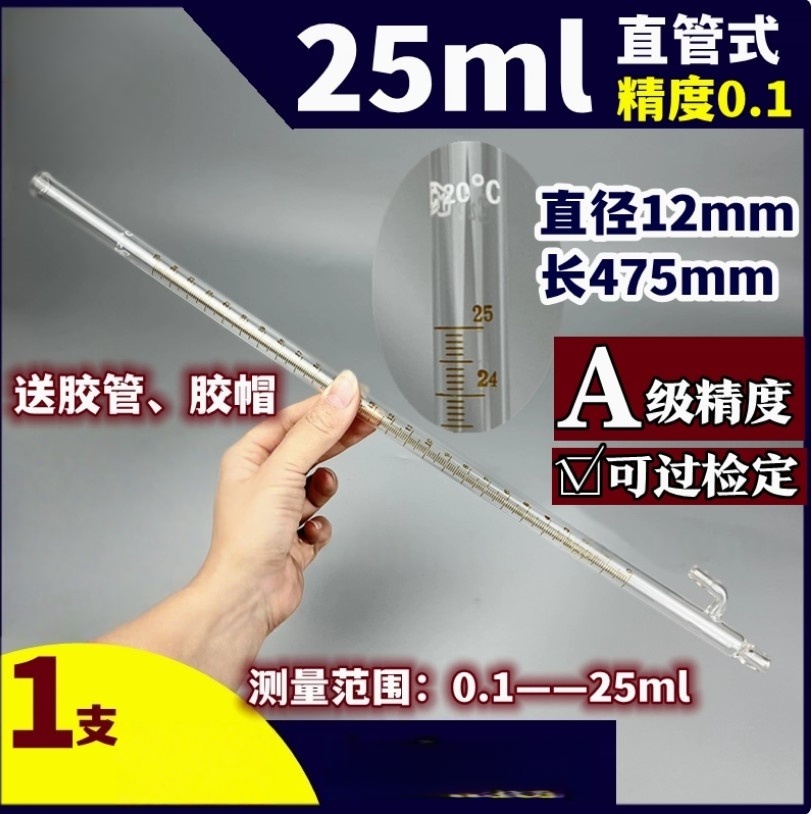 皂膜流量计色谱计大气采样校准玻璃皂沫皂泡气体流量计25ml分度0.1ml
