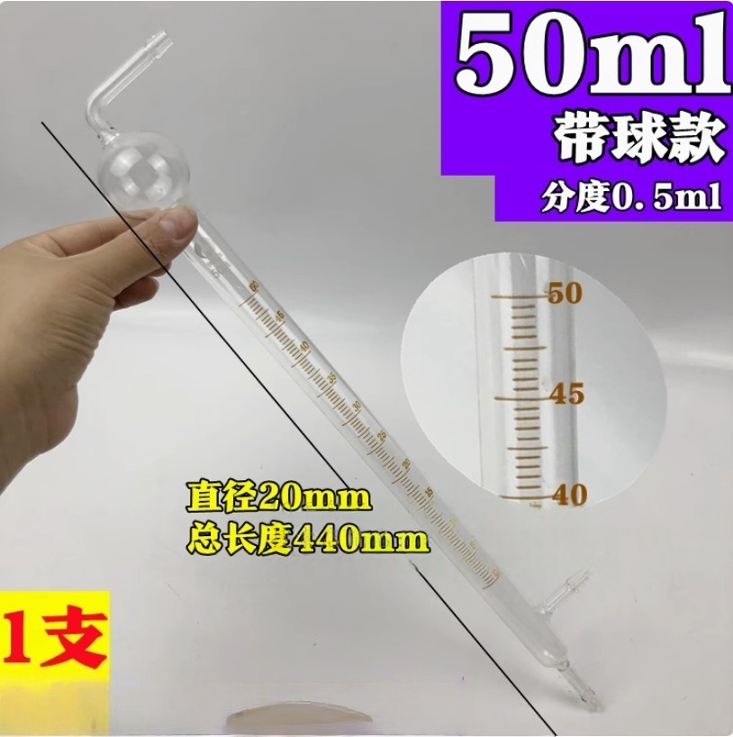 皂膜流量计色谱计大气采样校准玻璃皂沫皂泡气体流量计50ml精度0.5ml带球