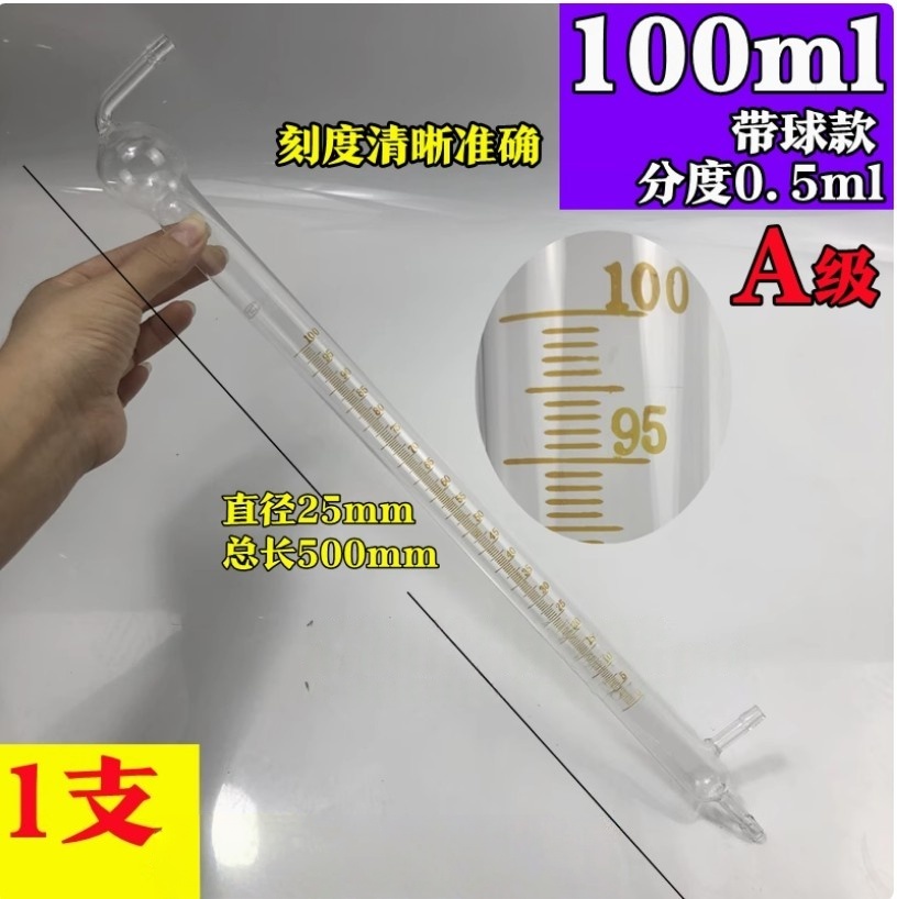 皂膜流量计色谱计大气采样校准玻璃皂沫皂泡气体流量计100ml精度0.5ml带球款