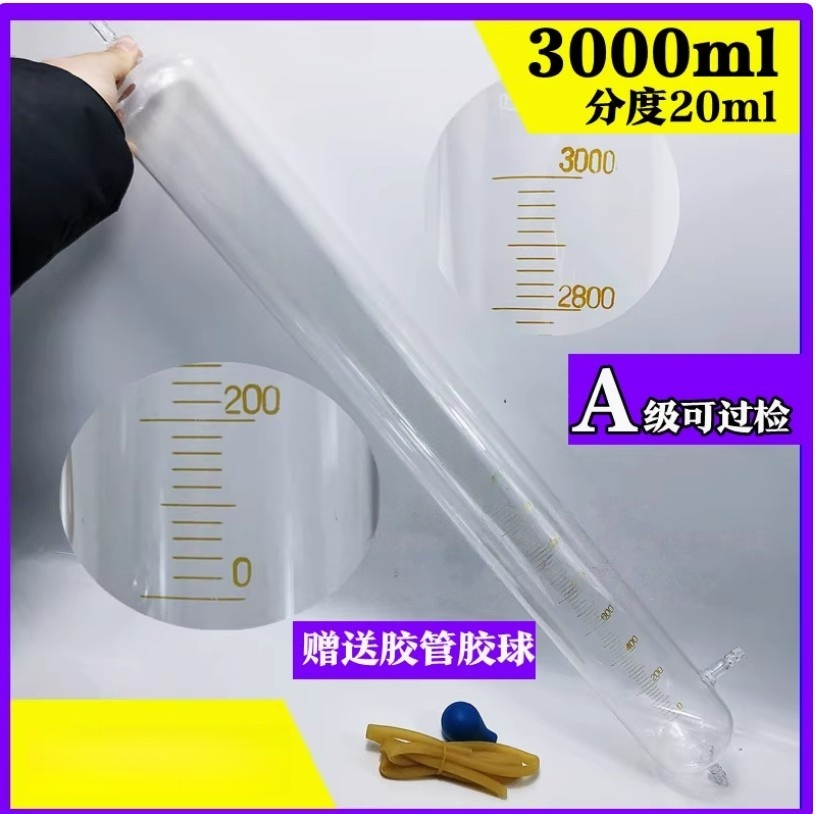 皂膜流量计色谱计大气采样校准玻璃皂沫皂泡气体流量计3000ml精度20ml直型