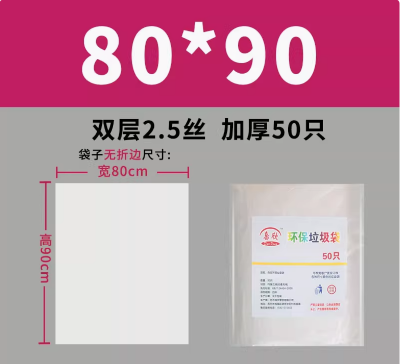 加厚样品袋大号白色透明塑料袋加厚垃圾袋 80*90cm50个