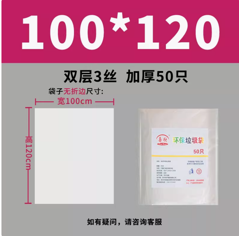 加厚样品袋大号白色透明塑料袋加厚垃圾袋 100*120cm50个