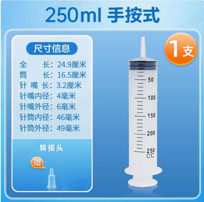 针筒注射器一次性医用大号大容量针管灌肠胃管鼻饲流喂食药助推器手按式250ml