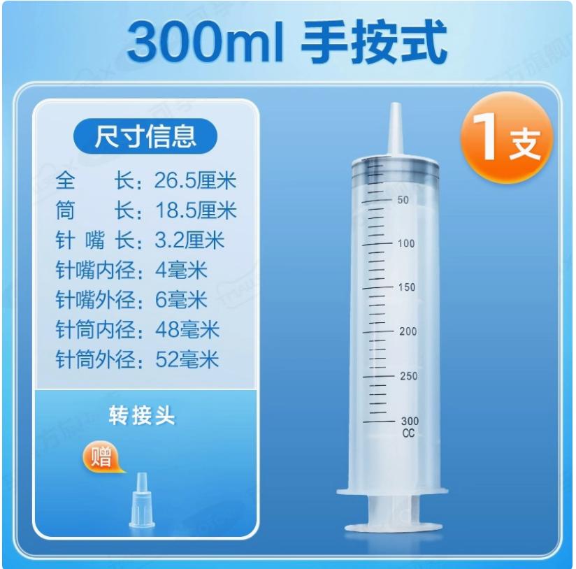 针筒注射器一次性医用大号大容量针管灌肠胃管鼻饲流喂食药助推器手按式300ml