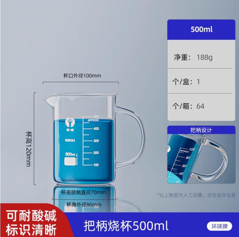 玻璃烧杯 带把烧杯 500ml