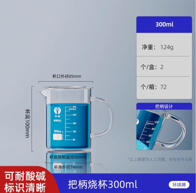 玻璃烧杯 带把烧杯 300ml