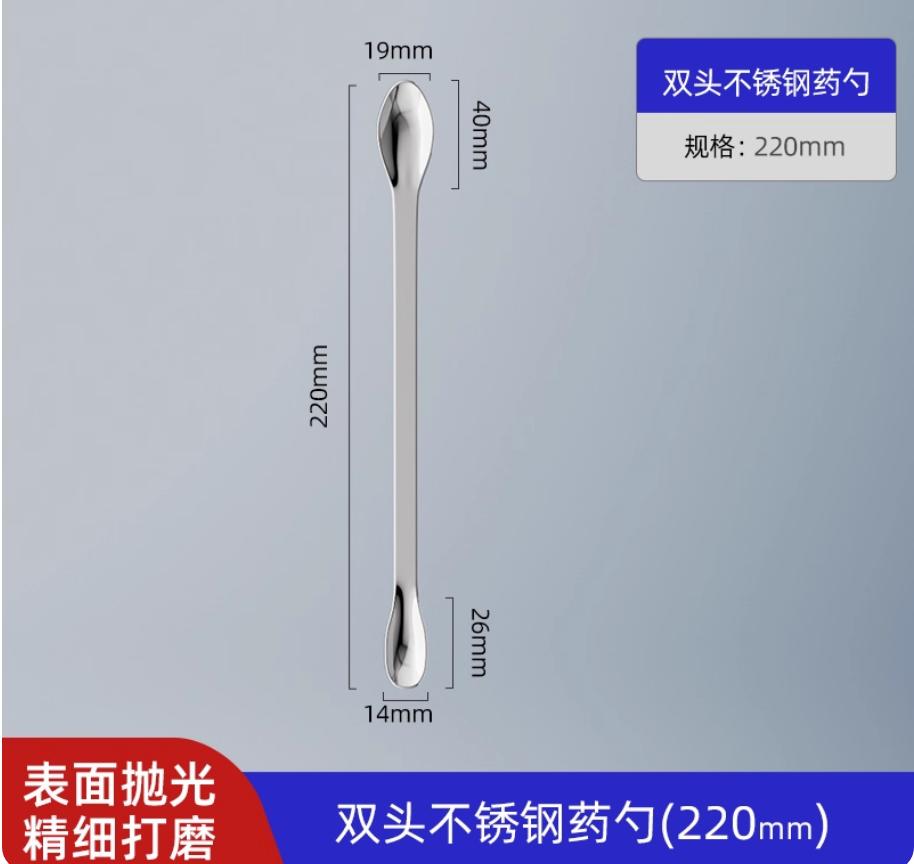 双头不锈钢勺双头药勺双头不锈钢取样勺药匙 一勺一铲200mm