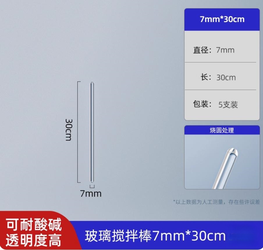 5支高硼硅 玻璃搅拌棒 玻璃棒引流棒导流棒 耐高温腐蚀7mm*30cm