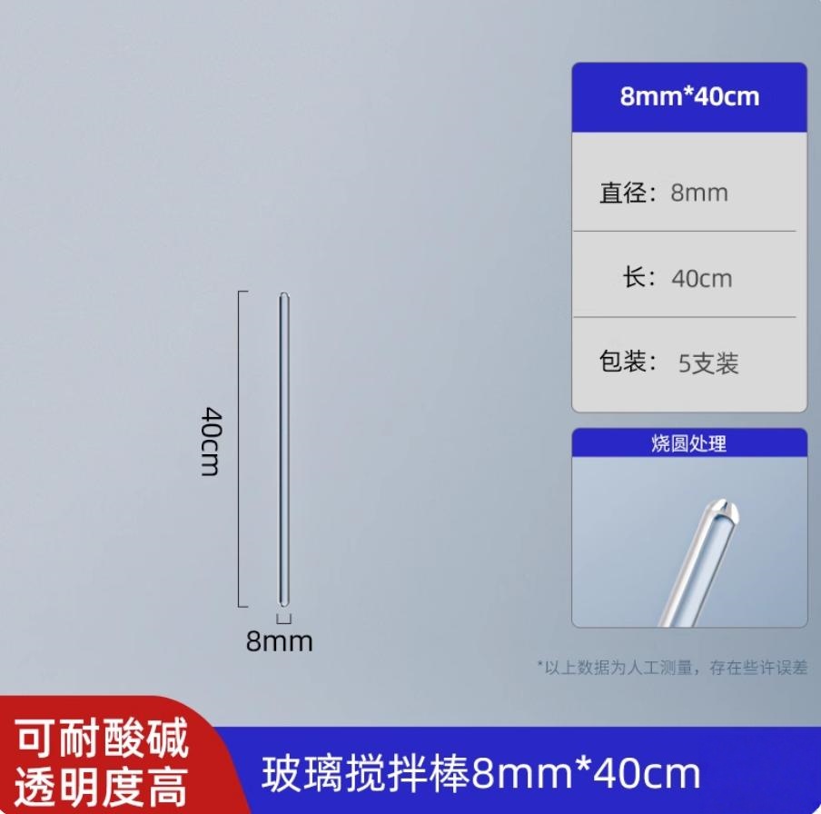 5支高硼硅 玻璃搅拌棒 玻璃棒引流棒导流棒 耐高温腐蚀8mm*40cm