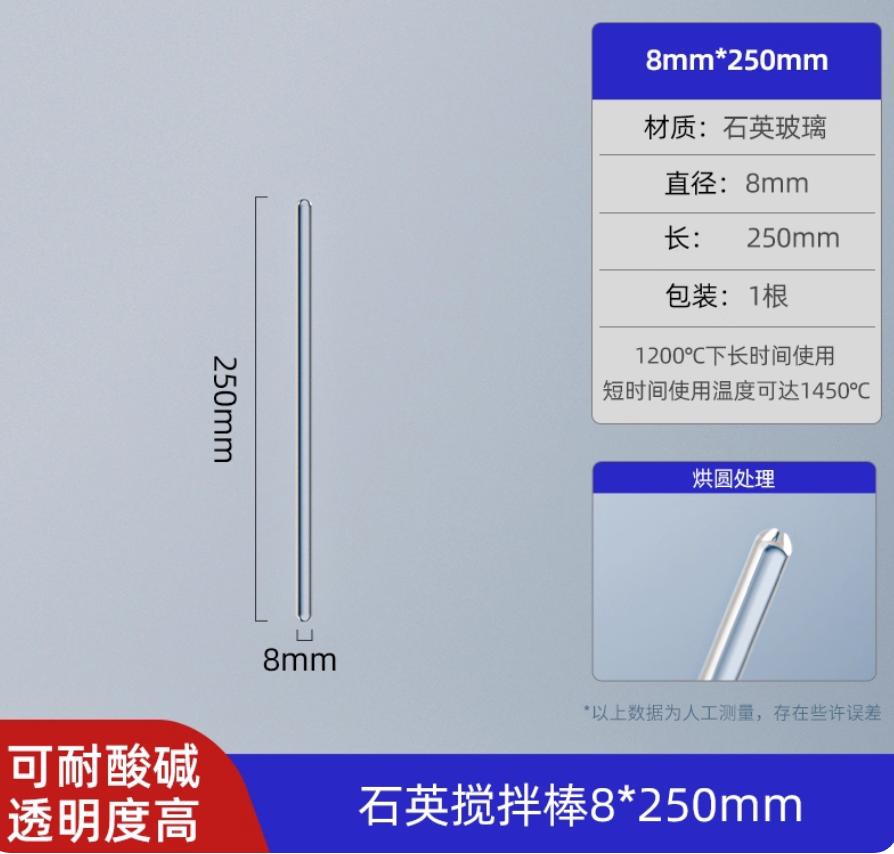石英棒石英搅拌棒高硼硅 石英玻璃搅拌棒 石英玻璃棒引流棒导流棒 耐高温1200℃腐蚀8*250mm