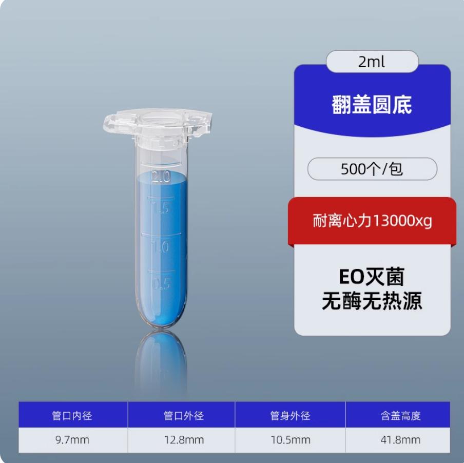 EO灭菌无酶无热原塑料离心管 带刻度离心管/EP管 pcr管2ml 500个/袋