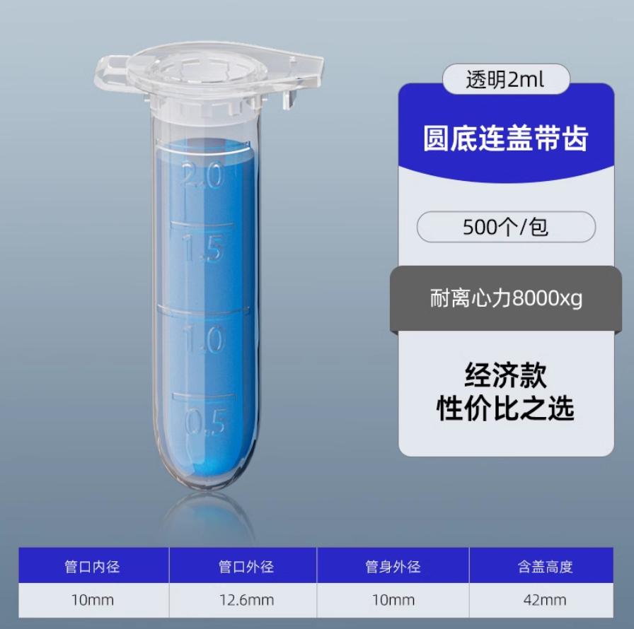 塑料离心管 2ml连盖带齿(500个/袋) 带刻度离心管/EP管 pcr管