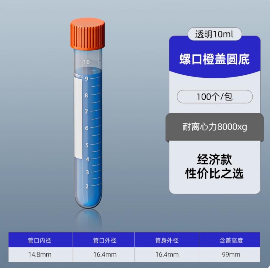 塑料离心管 10ml螺口橙盖圆底(100个/袋) 带刻度离心管/EP管 pcr管