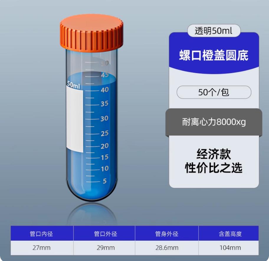 塑料离心管 50ml螺口橙盖圆底(50个/袋) 带刻度离心管/EP管 pcr管