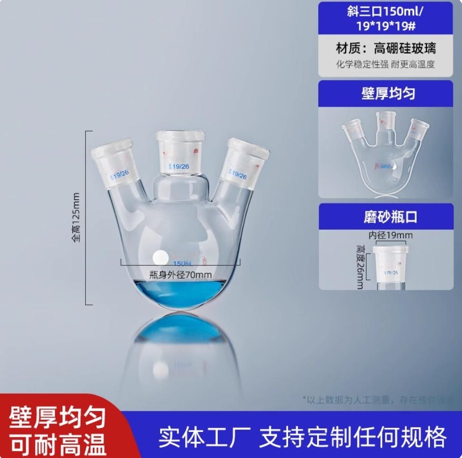 玻璃三口烧瓶 圆底球形蒸馏瓶 高硼硅 斜三口烧瓶 150ml/19*19*19#