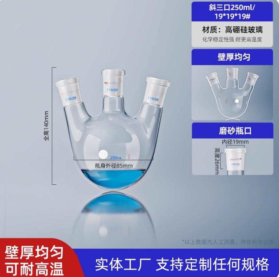 玻璃三口烧瓶 圆底球形蒸馏瓶 高硼硅 斜三口烧瓶 250ml/19*19*19#