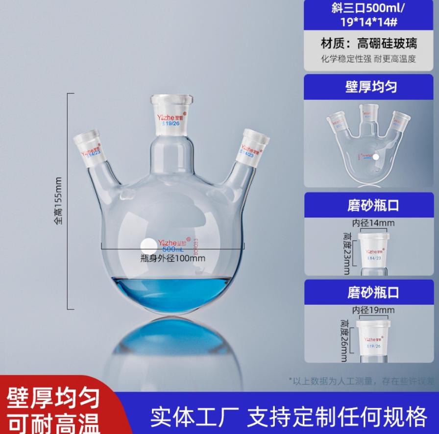 玻璃三口烧瓶 圆底球形蒸馏瓶 高硼硅 斜三口烧瓶 500ml/19*14*14#