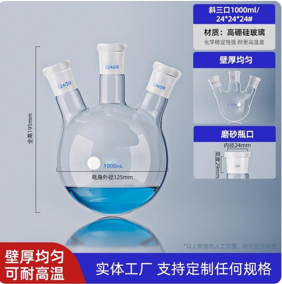 玻璃三口烧瓶 圆底球形蒸馏瓶 高硼硅 斜三口烧瓶 1000ml/24*24*24#