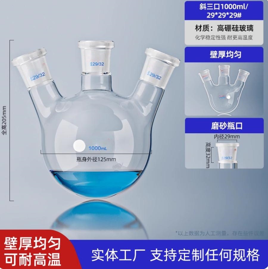 玻璃三口烧瓶 圆底球形蒸馏瓶 高硼硅 斜三口烧瓶 1000ml/29*29*29#