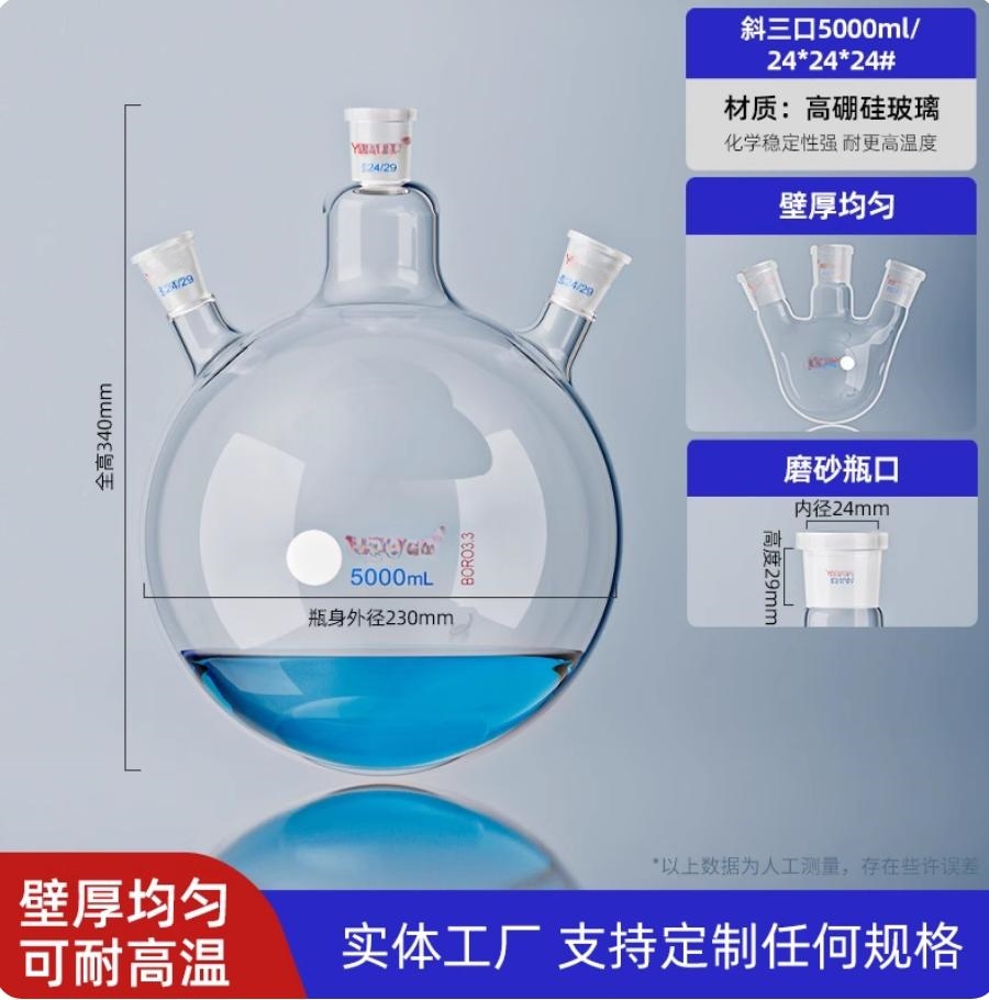 玻璃三口烧瓶 圆底球形蒸馏瓶 高硼硅 斜三口烧瓶 5000ml/24*24*24#