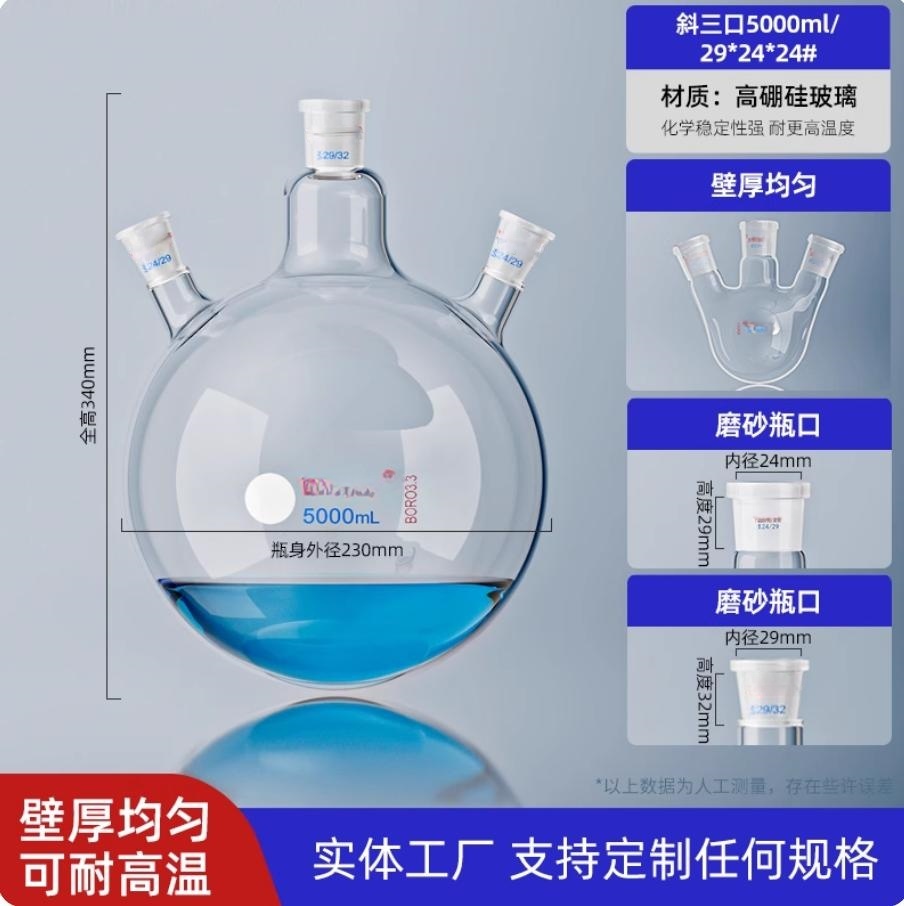 玻璃三口烧瓶 圆底球形蒸馏瓶 高硼硅 斜三口烧瓶 5000ml/29*24*24#