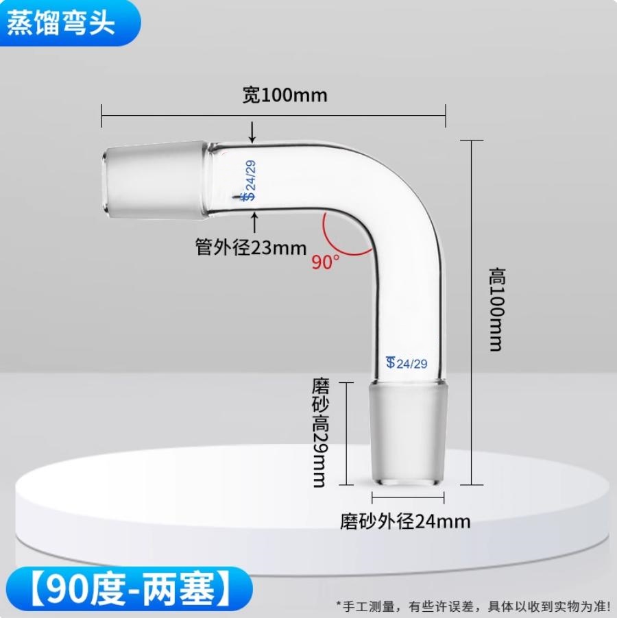 90度蒸馏头蒸馏弯头牛角管具侧接受管冷凝管磨口锥形瓶高硼硅透明玻璃化学实验转接头转接口24*24#(塞*塞)