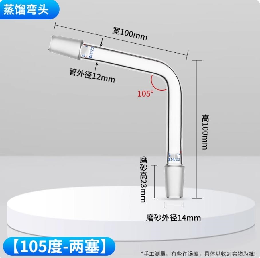 105度蒸馏头蒸馏弯头牛角管具侧接受管冷凝管磨口锥形瓶高硼硅透明玻璃化学实验转接头转接口14*14#(塞*塞)