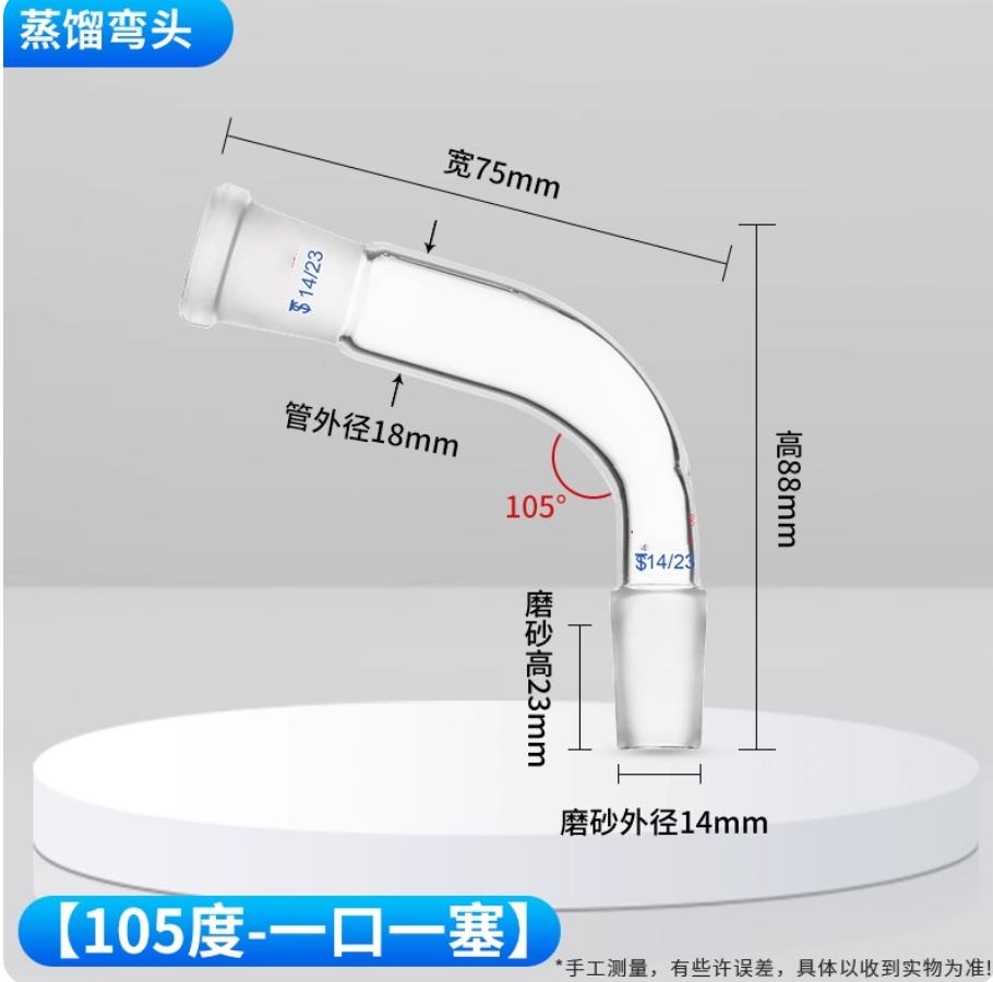 105度蒸馏头蒸馏弯头牛角管具侧接受管冷凝管磨口锥形瓶高硼硅透明玻璃化学实验转接头转接口14*14#(口*塞)