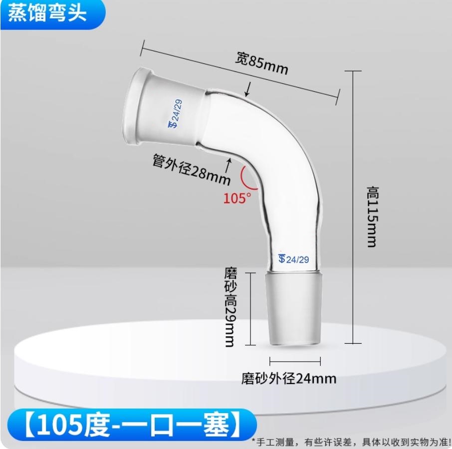 105度蒸馏头蒸馏弯头牛角管具侧接受管冷凝管磨口锥形瓶高硼硅透明玻璃化学实验转接头转接口24*24#(口*塞)
