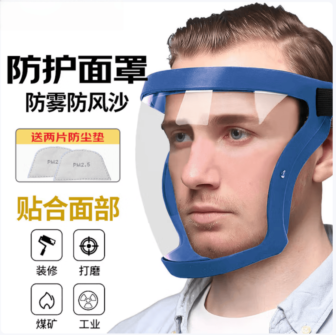 防护面罩 高透明防雾全面罩防水防尘保护面屏 蓝色框透明