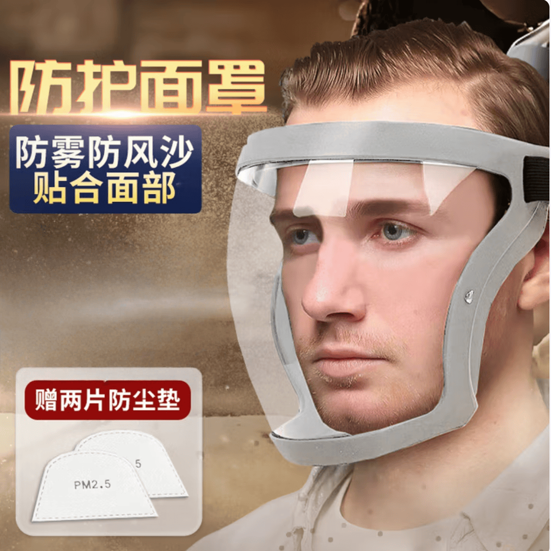 防护面罩 高透明防雾全面罩防水防尘保护面屏 灰色框透明
