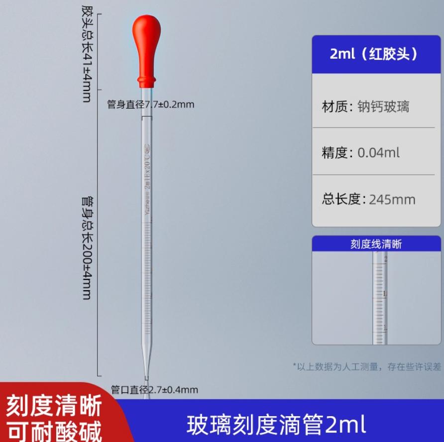 胶头滴管 玻璃刻度吸管滴管玻璃移液管环形刻度滴管2ml精确到0.04ml