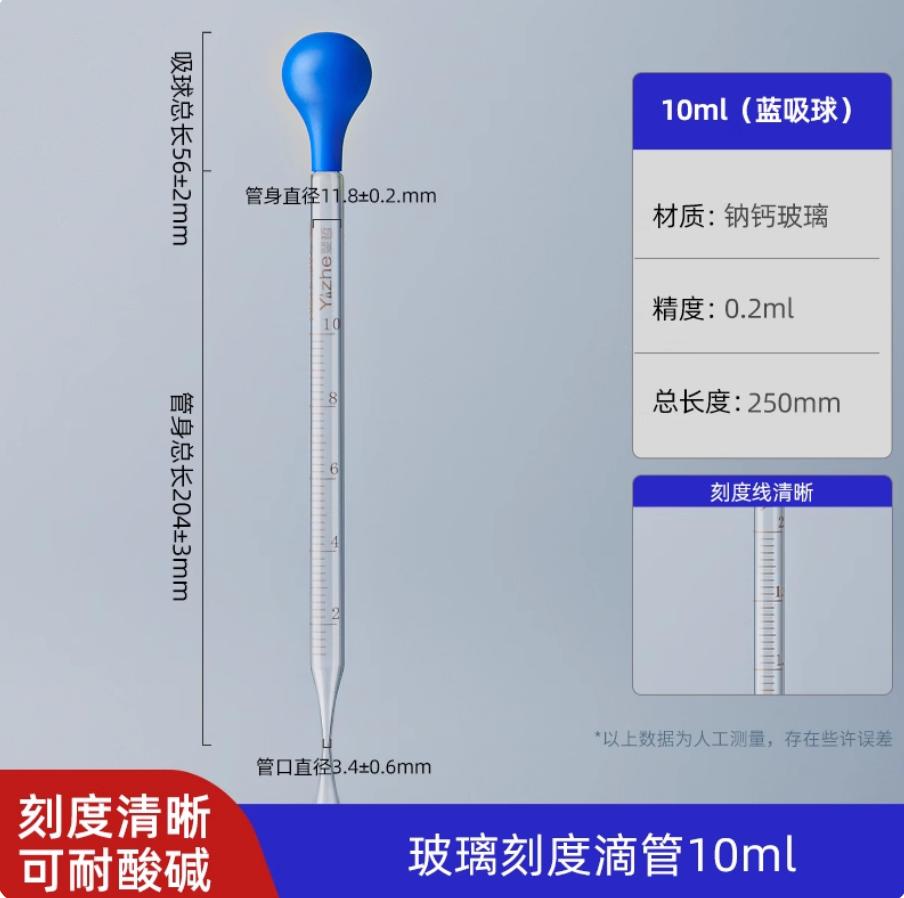 胶头滴管 玻璃刻度吸管滴管玻璃移液管环形刻度滴管10ml精确到0.2ml
