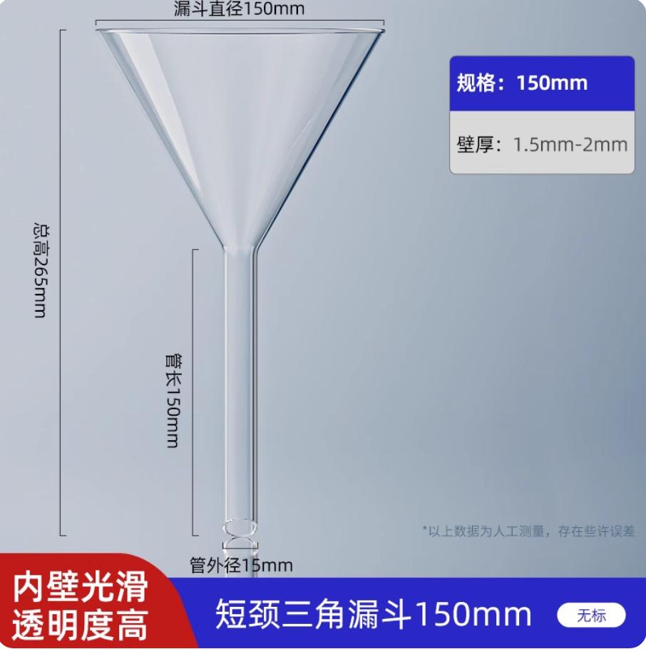 短颈三角漏斗 玻璃漏斗灯工漏斗150mm