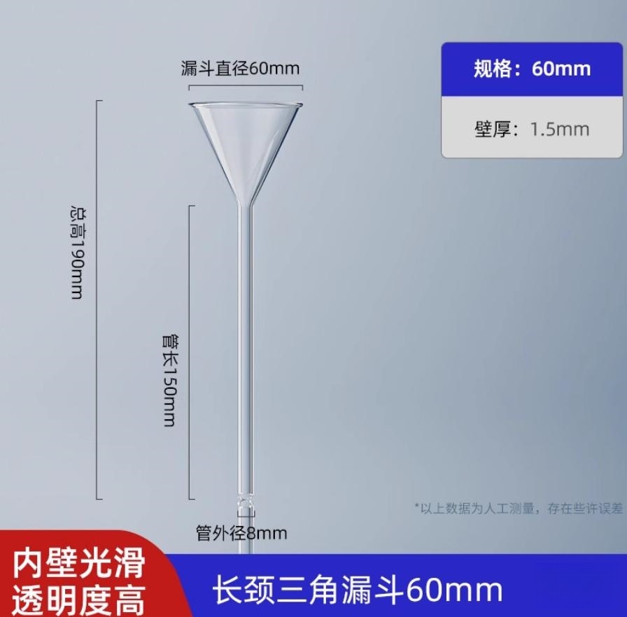 长颈三角漏斗 长径漏斗玻璃漏斗灯工漏斗60mm