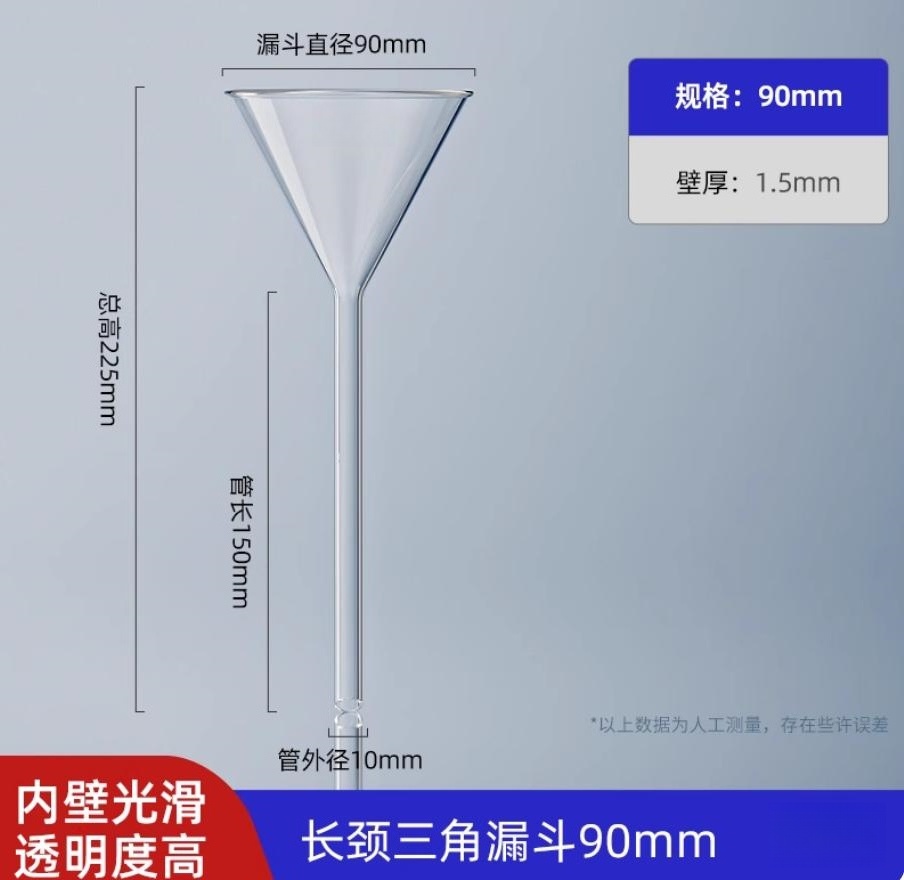 长颈三角漏斗 长径漏斗玻璃漏斗灯工漏斗90mm