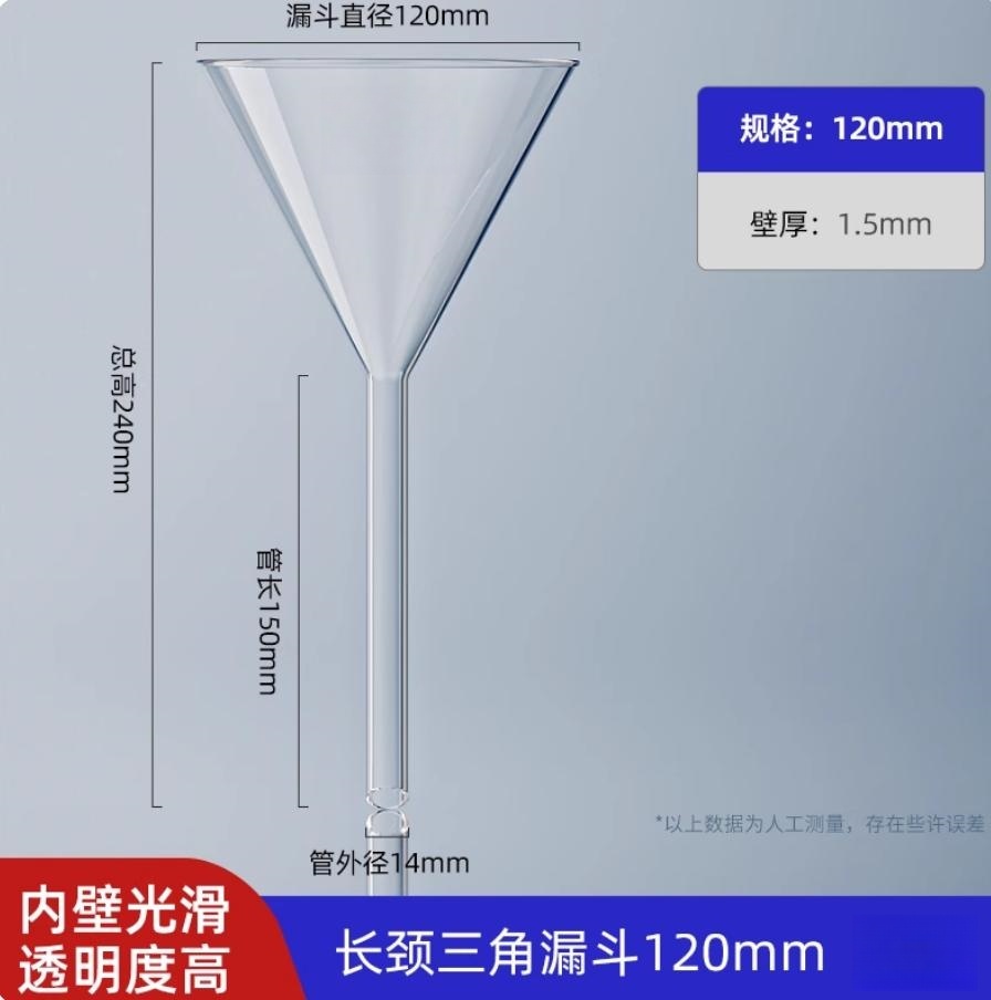 长颈三角漏斗 长径漏斗玻璃漏斗灯工漏斗120mm