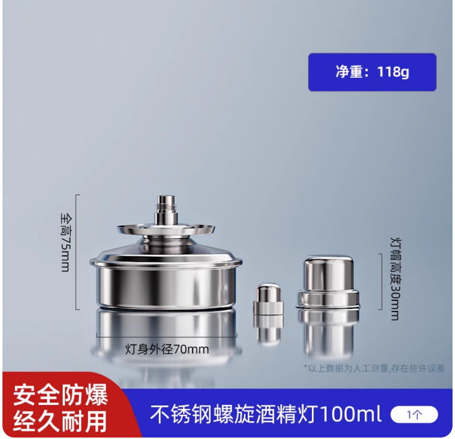 不锈钢酒精灯防爆酒精灯 不锈钢螺旋酒精灯100ml