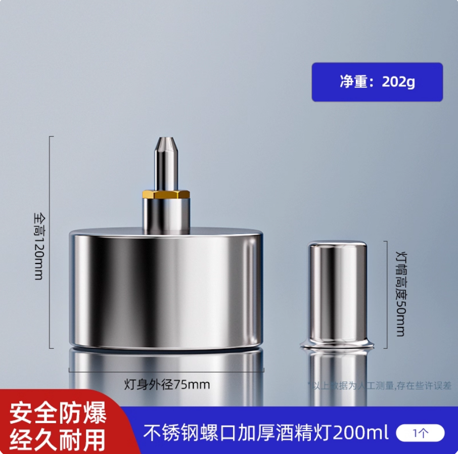 不锈钢酒精灯防爆酒精灯 不锈钢螺旋酒精灯200ml
