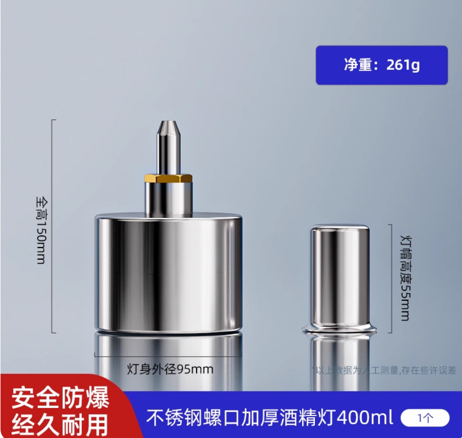 不锈钢酒精灯防爆酒精灯 不锈钢螺旋酒精灯400ml