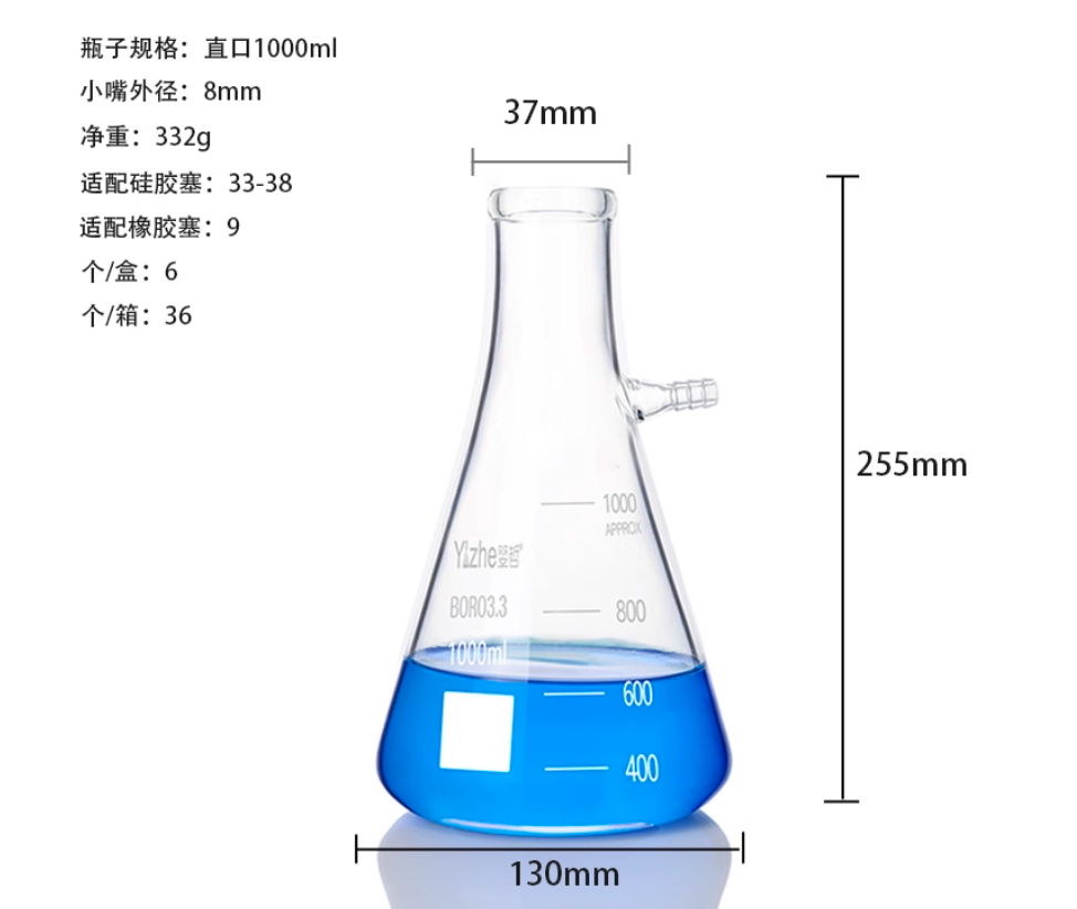 上嘴抽滤瓶抽滤瓶三角瓶抽滤三角瓶直口1000ml