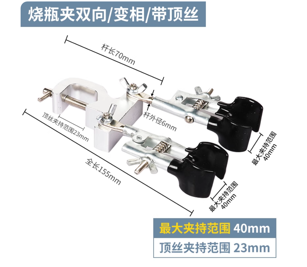 不锈钢烧瓶夹镀锌 十字夹冷凝管夹万能夹烧瓶夹双向变相 带顶丝